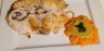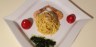 Cernia con mousse di peperone, julienne di carota sovrastata da ciuffo di zucchina