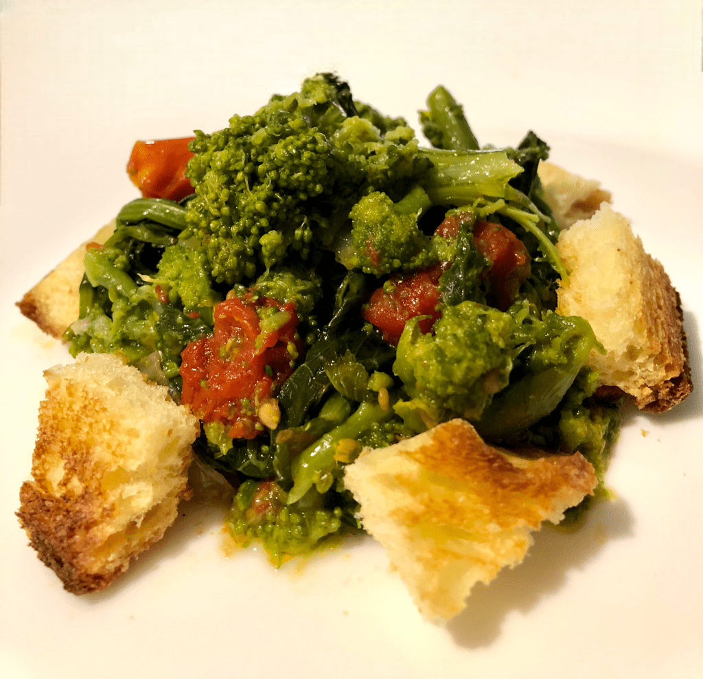 Non appena le verdure saranno appassite e i gambi morbidi togliamole dal fuoco e serviamole accompagnandole con dei crostini di pane di Altamura.