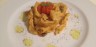 Un gamberone con una pappardella, una zucchina, un pomodorino e olio santo… si può …